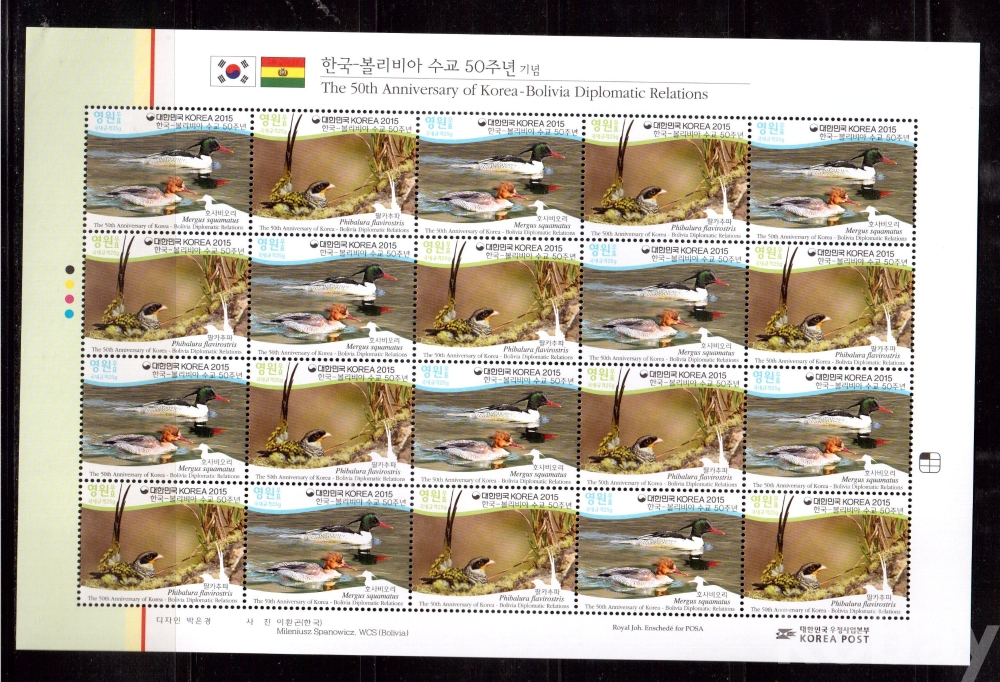 (한국전지) 2015.4.24 한국-볼리비아 수교 50주년 sheet of 20 MNH
