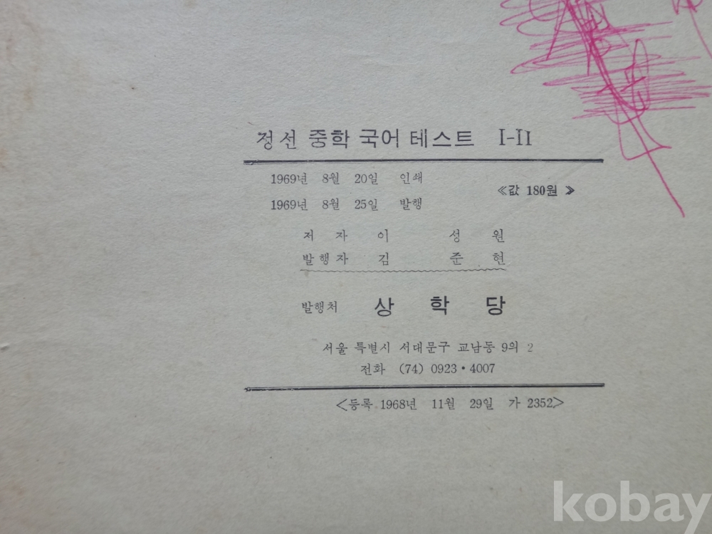 정선 - 중학 국어 테스트 1-2 (1969년, 상학당)