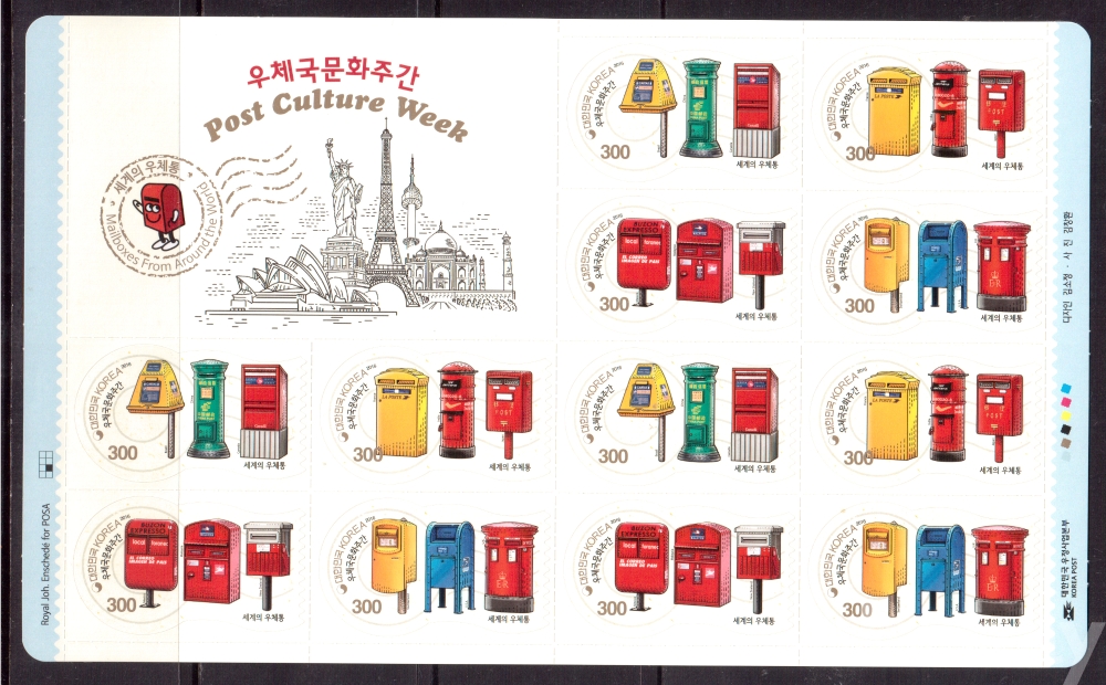 (한국전지) 2016.7.19 우체국문화주간 sheet of 12 MNH
