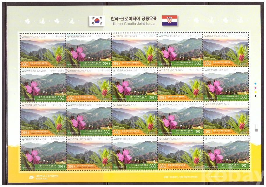 (한국전지) 2019.8.29 한국-크로아티아 공동 sheet of 20 MNH