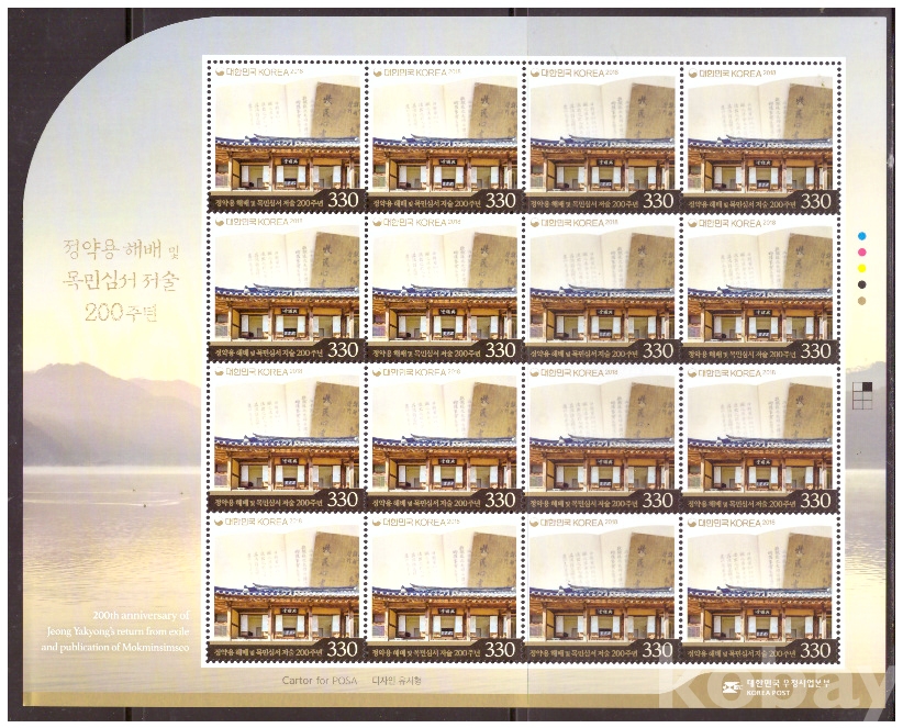 (한국전지) 2018.9.14 정약용 해배 및 목민심서 저술 200주년 sheet of 16 MNH