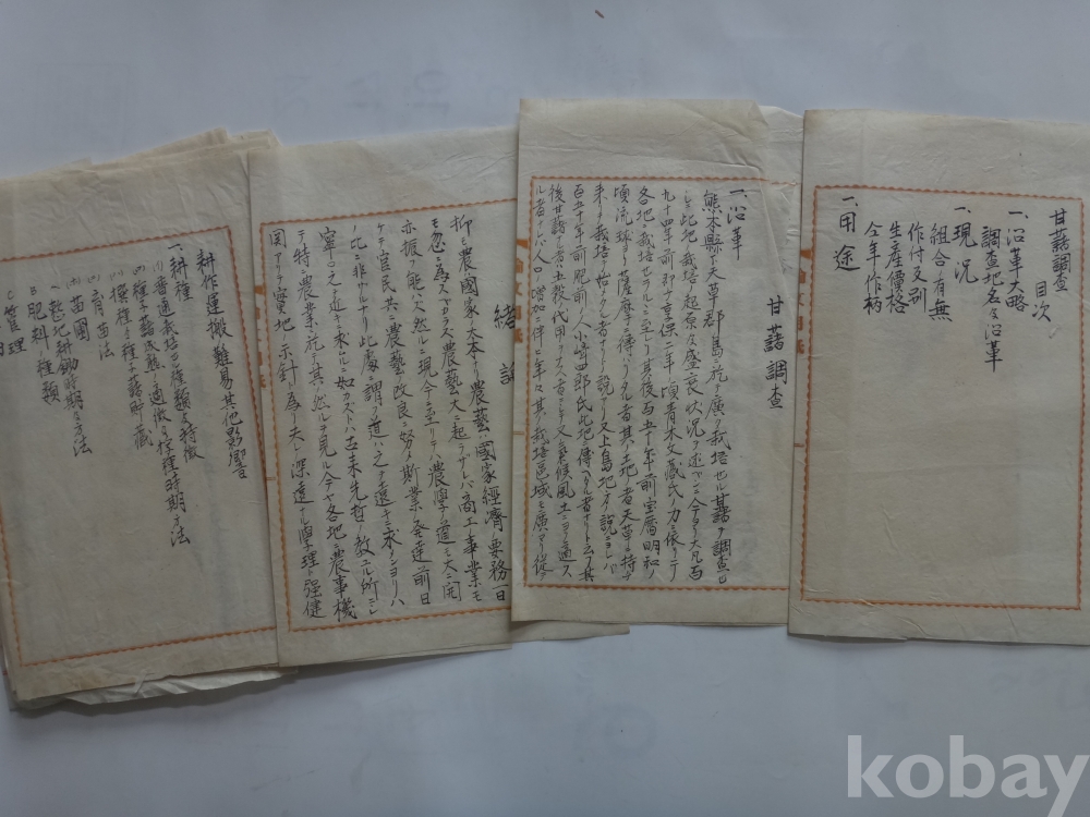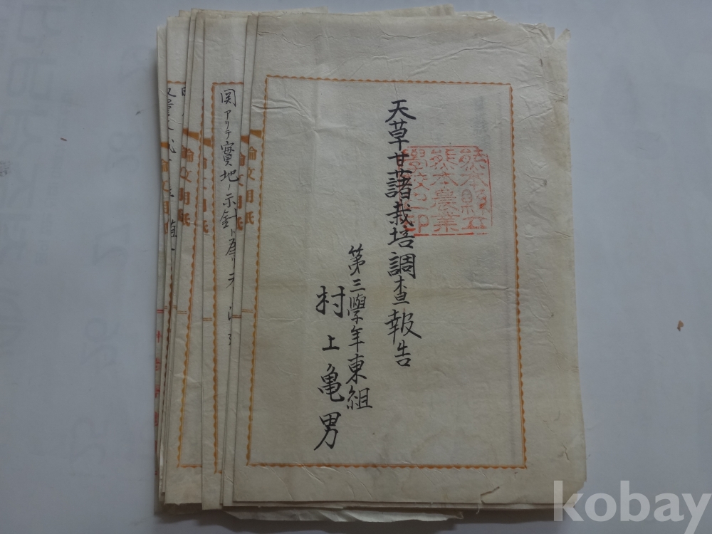 천초 감저 (天草 甘藷) 재배 조사 보고서 - 제3학년 (웅본현***농업학교) 완질이 아니고 분리된 낙장 모음, 반쪽도 있음