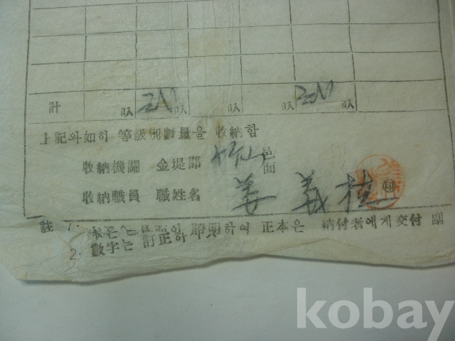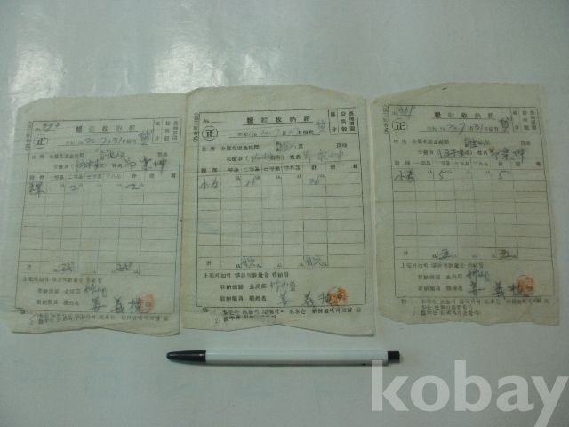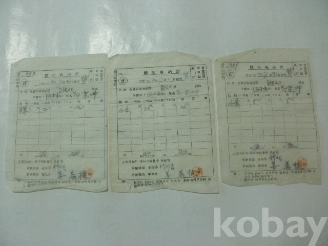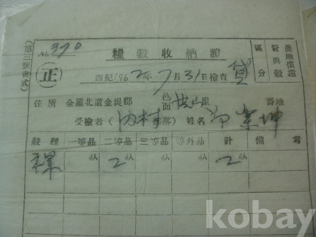 양곡 수납증 - 3매일괄 (1962년, 전북 김제군 죽산면 내촌부락