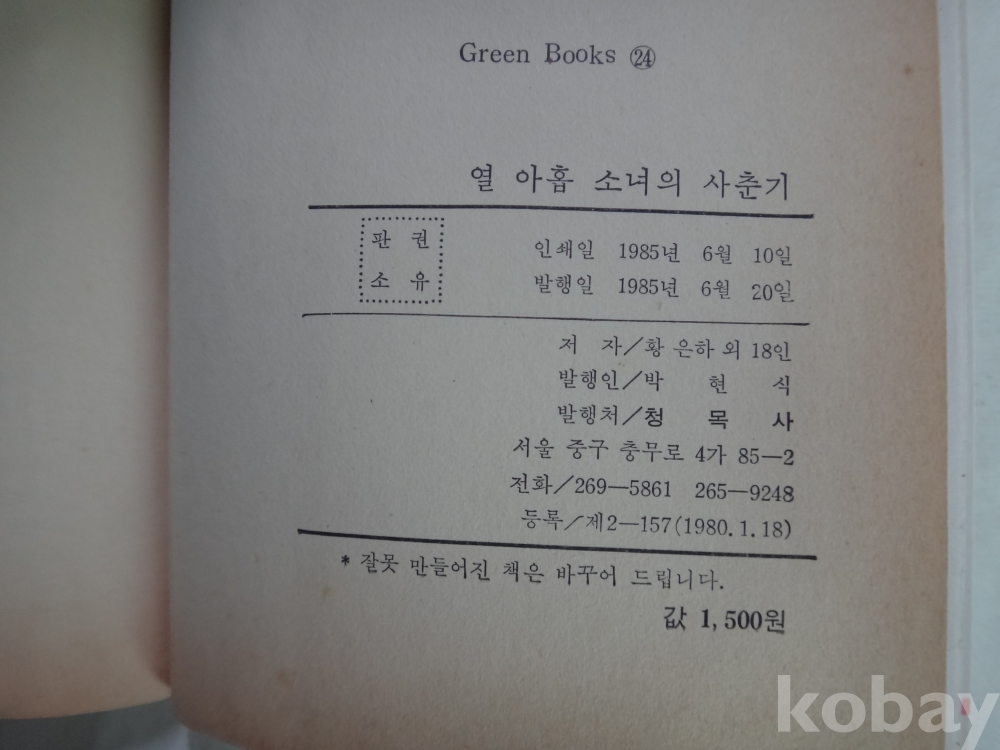 열아홉 소녀의 사춘기 (1985년, 황은하 외 18인, 청목사)