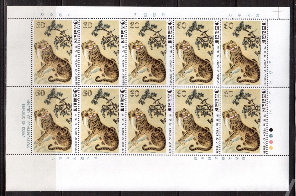 (힌국전지) 1980.3.10 민화시리즈(제1집)-작호도 sheet of 10 MNH