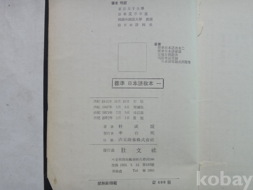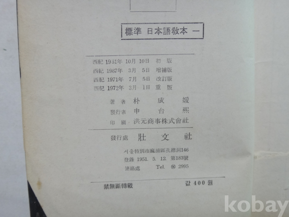 (표준) 일본어 교본 (1972년, 한국외국어대학 교수 박성원, 장문사)
