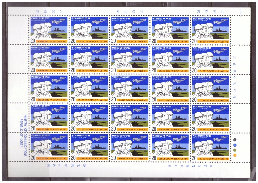 (한국전지) 1978.10.1 건군 30주년 sheet of 25 MNH