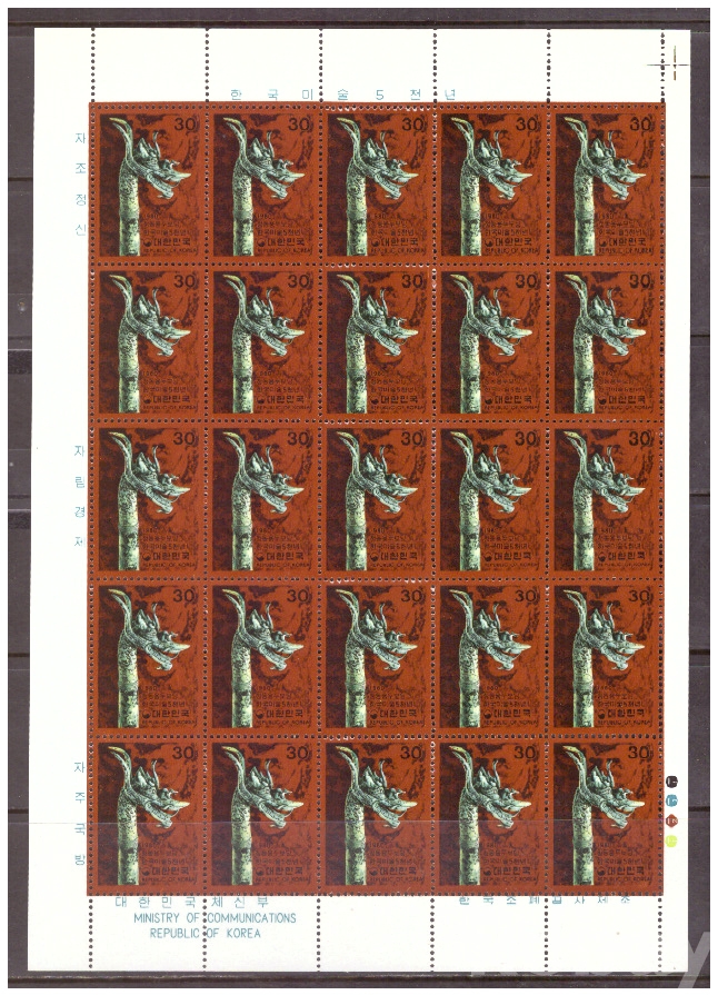 (힌국전지) 1980.4.20 한국미술 5000년-청두용두보당 sheet of 25 MNH