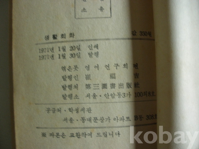 생활회화 (1971년, 영어연구회편, 제3도서출판사)