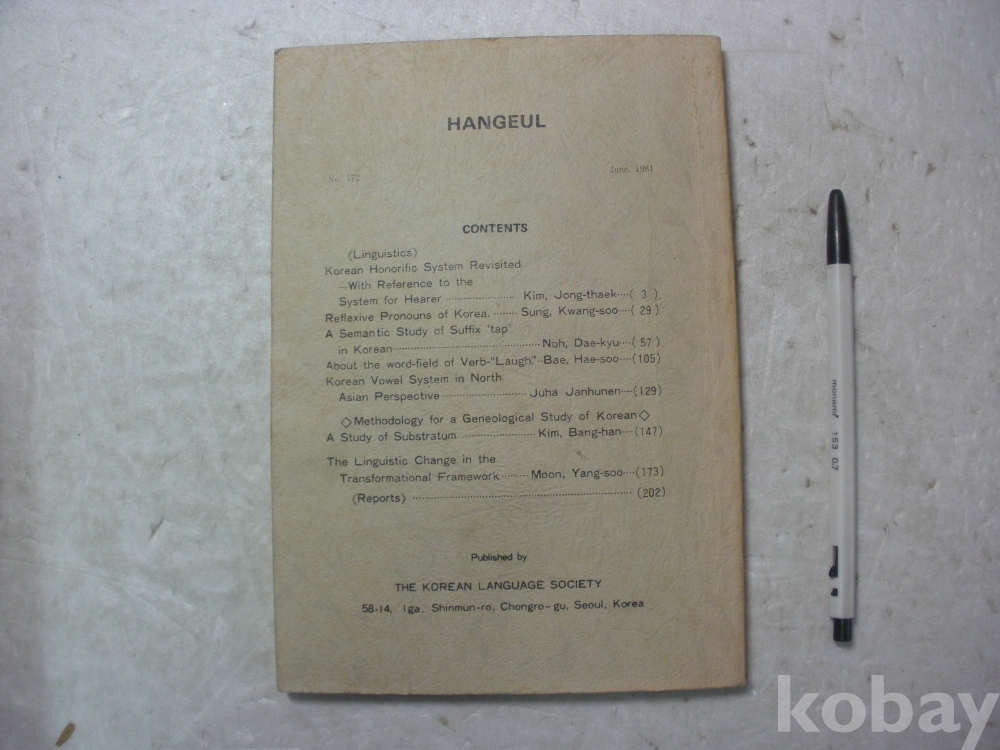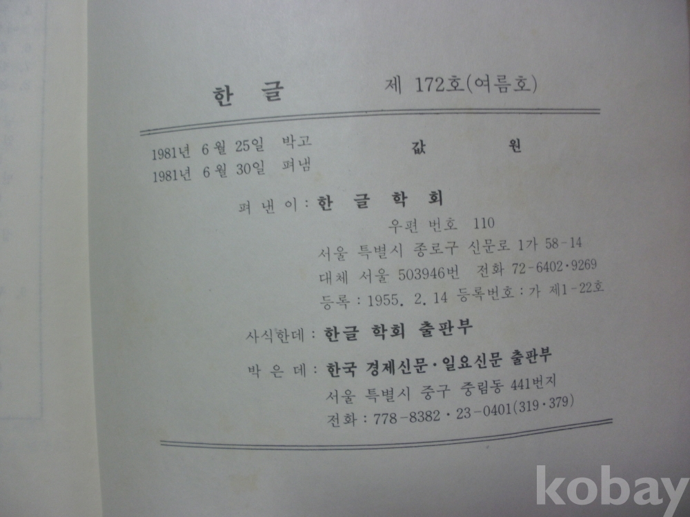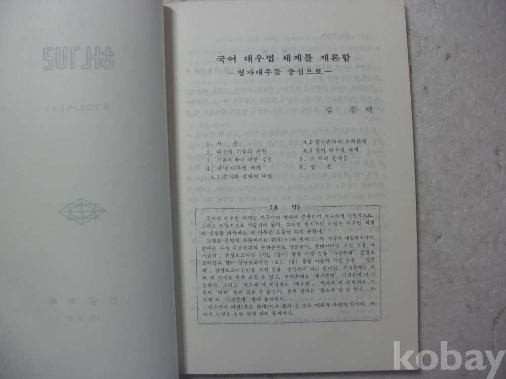 한글 - 국어 대우법 체계를 재론함 등 (1981년, 한글학회)