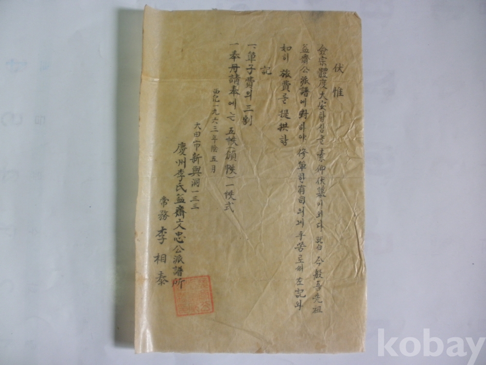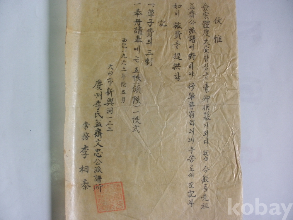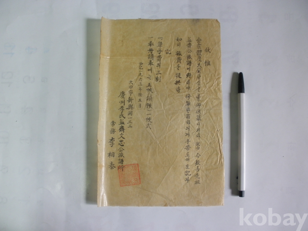 경주이씨 익재 문충공 파보 단수 - 유사 여비제공 (1963년)