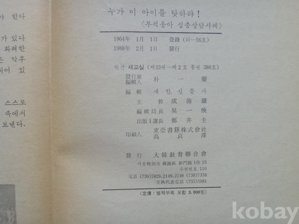 누가 이 아이를 탓하랴 ! - 부적응아 심츨 상담사례 (1988년, 대한교육연합회)