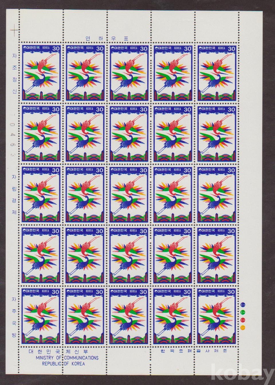 (힌국전지) 1980.12.1 연하우표-쌍학 sheet of 25 MNH