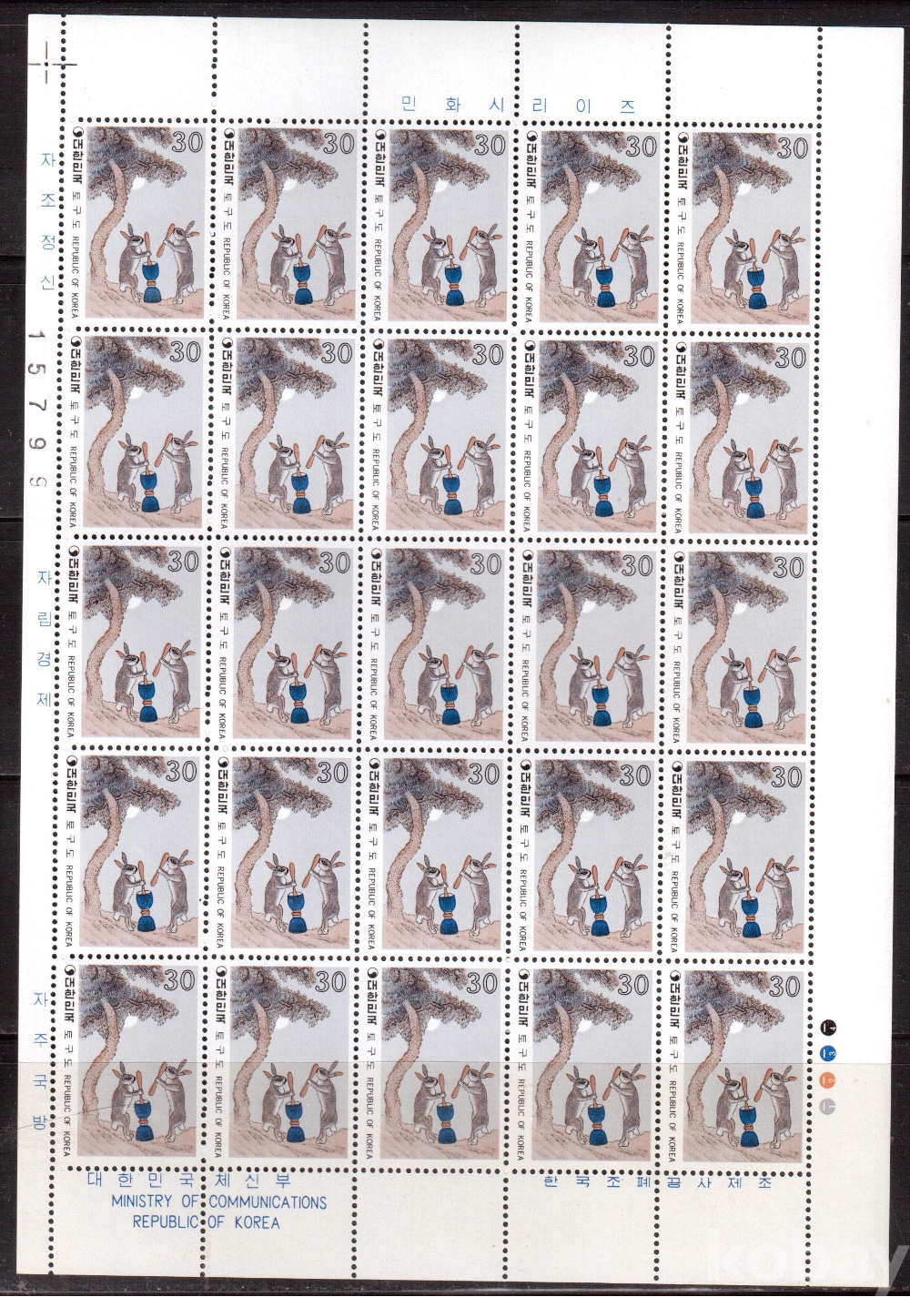 (힌국전지) 1980.7.10 민화시리즈(제3집)-토구도 sheet of 25 MNH