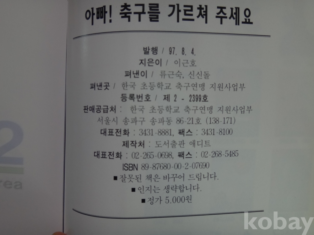 아빠 ! 축구를 가르쳐 주세요 - 판화로 배우는 축구경기 규칙 (1997년, 이근호 지음, 한국 초등학교 축구연맹)