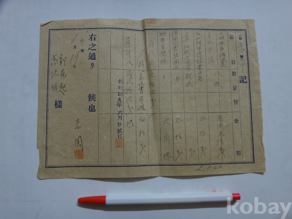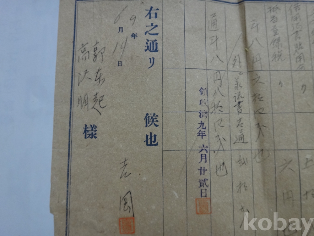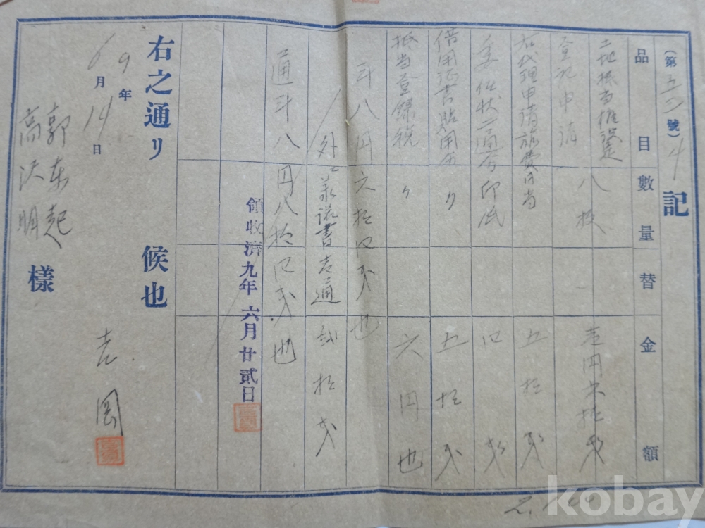 저당등록세, 등기신청.., 위임장 인지대 등 - 영수증 (소화9년)