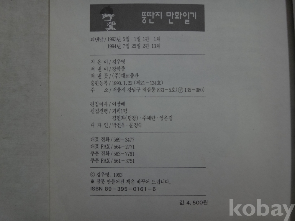 뚱딴지 - 만화일기 (1994년, 김우영 지음, 대교출판)
