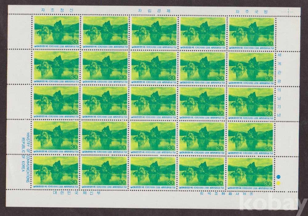 (힌국전지) 1980.9.28 세계관광의 날-도담삼봉 sheet of 25 MNH
