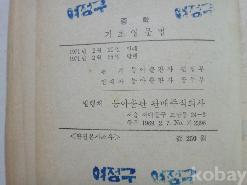 (중학) 기초 영문법 (1971년, 동아출판사)