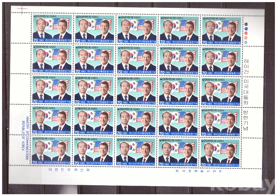(한국전지) 1983.11.12 레이건 미국대통령 방한 sheet of 25 MNH