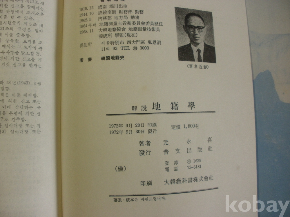 (해설) 지적학 (1972년, 원영희 저, 보문출판사)