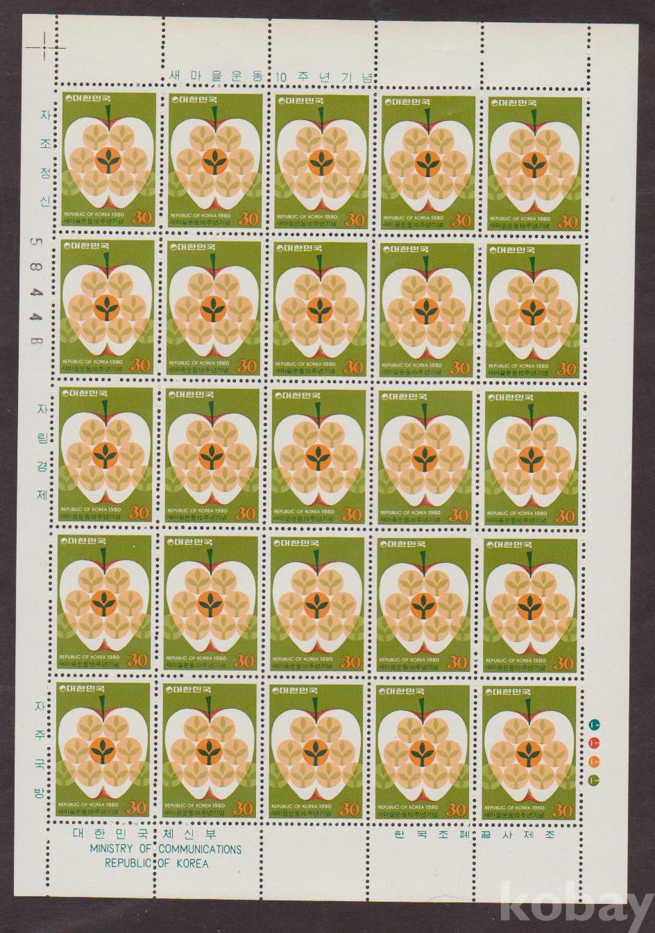 (힌국전지) 1980.4.22 새마을운동 10주년 sheet of 25 MNH