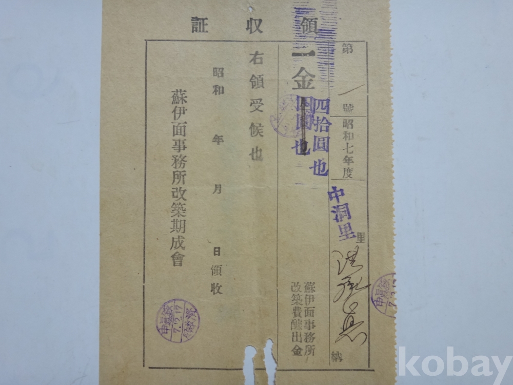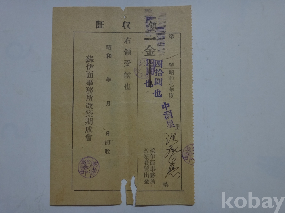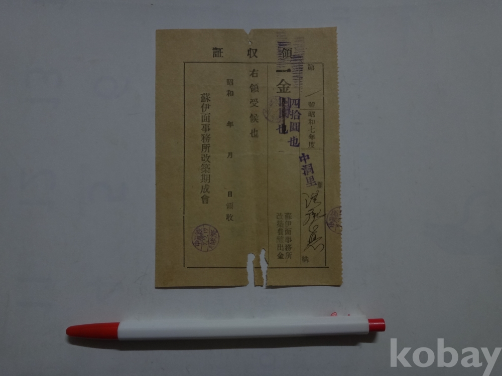 (음성군) 소이면사무소 개축비 각출금 - 영수증 (소화7년, 소이면사무소개축기성회)