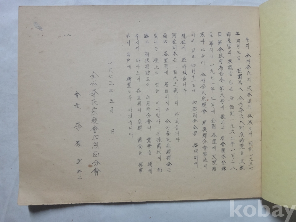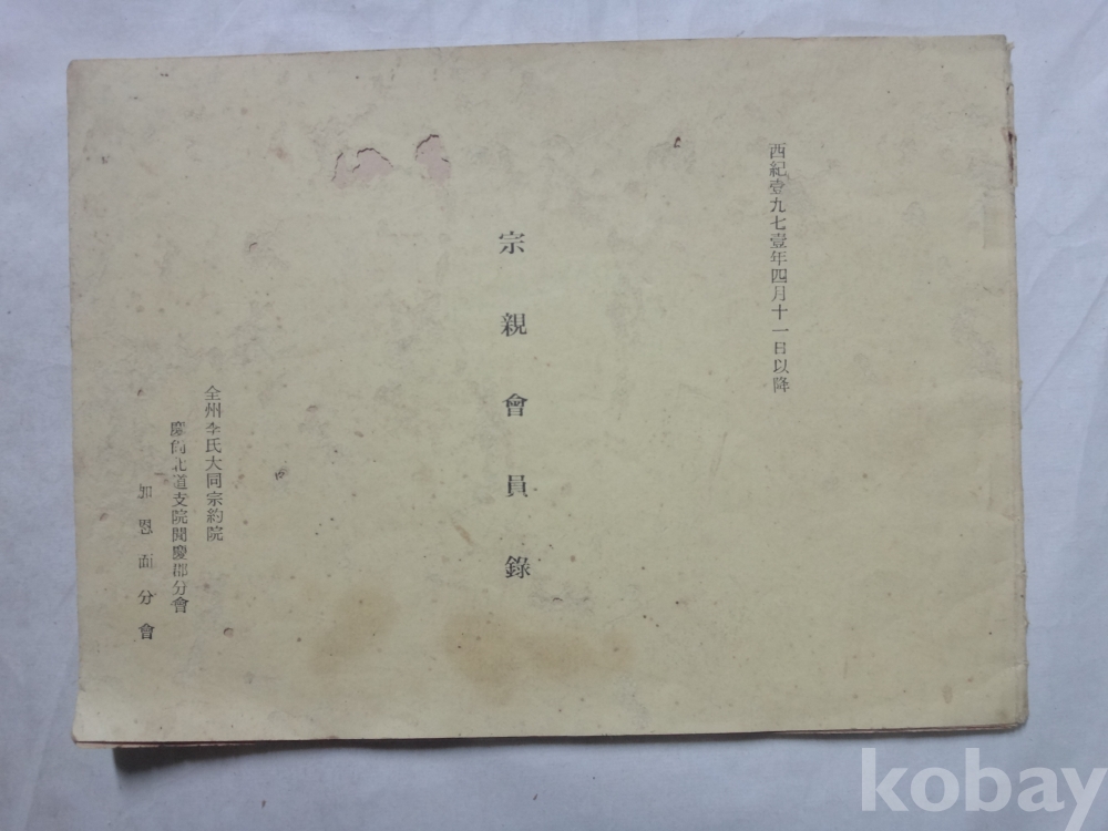전주이씨대동종약원 가은면분회 - 종친회원록 (1971년)