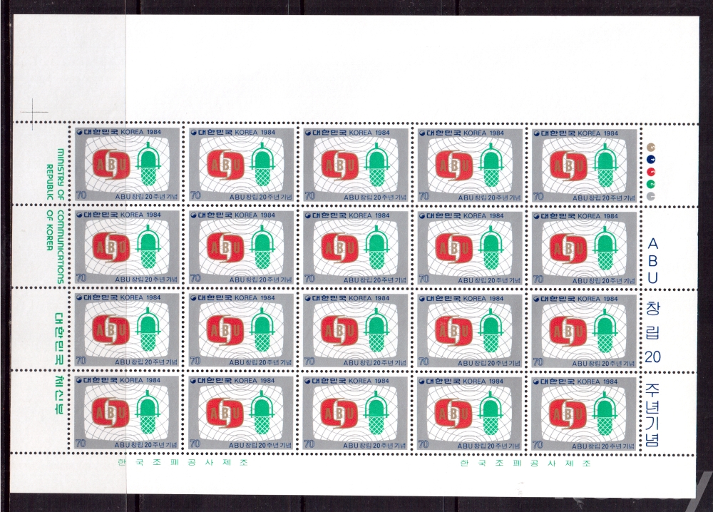 (한국전지) 1984.6.30 ABU 창립 20주년 sheet of 20 MNH