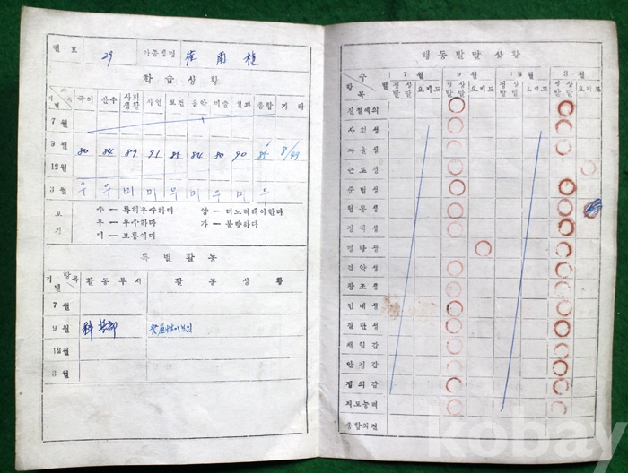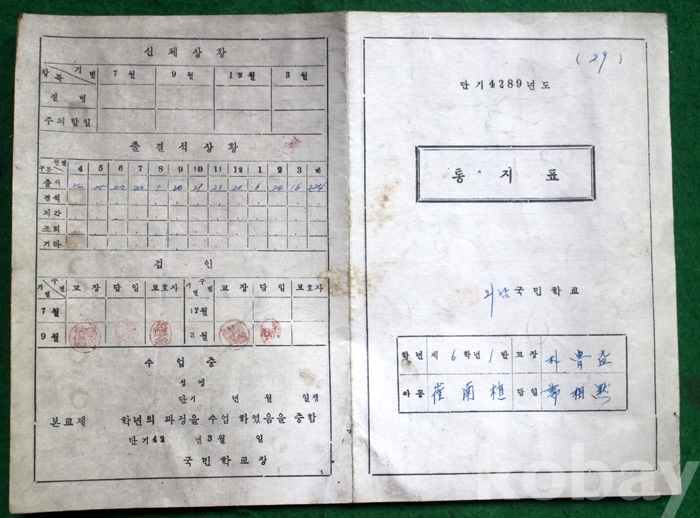 (상장 및 졸업장) 1956년도 외남국민학교의 통지표 ...