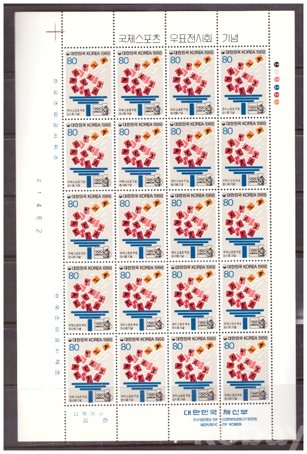 (한국전지) 1988.9.19 국제스포츠 우표전시회 sheet of 20 MNH