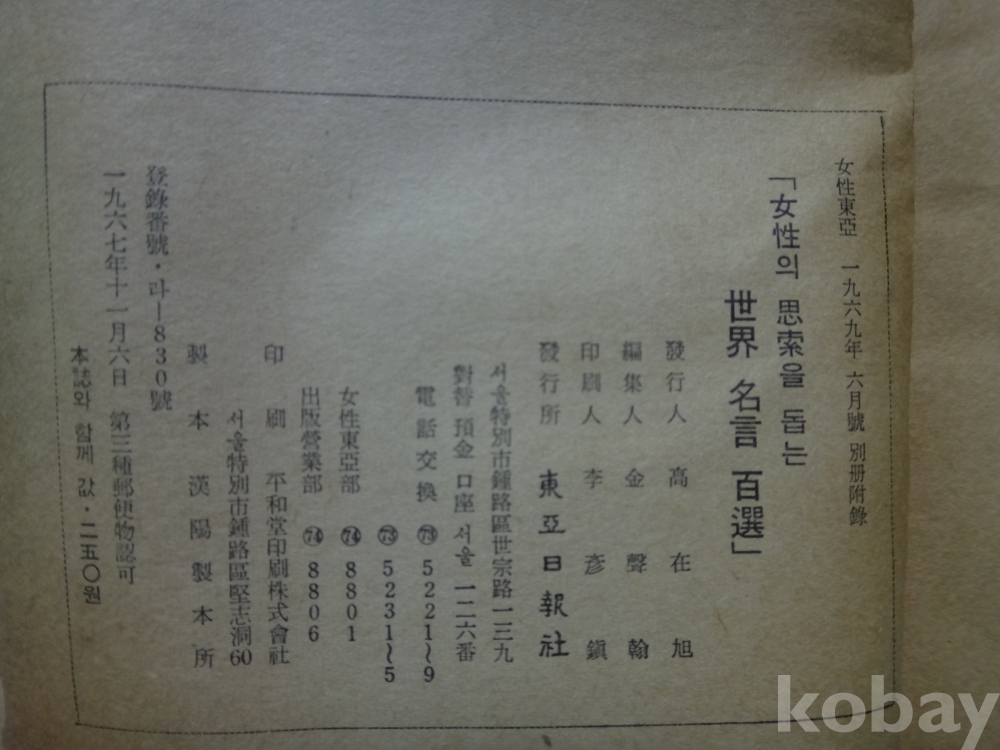 여성의 사색을 돕는 - 세계 명언 백과 (1969년, 동아일보사)