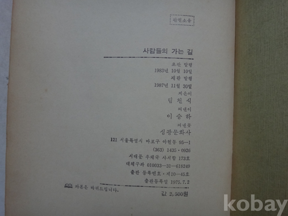 림천식 에세이 - 사람들의 가는 길 (1987년, 성광문화사)