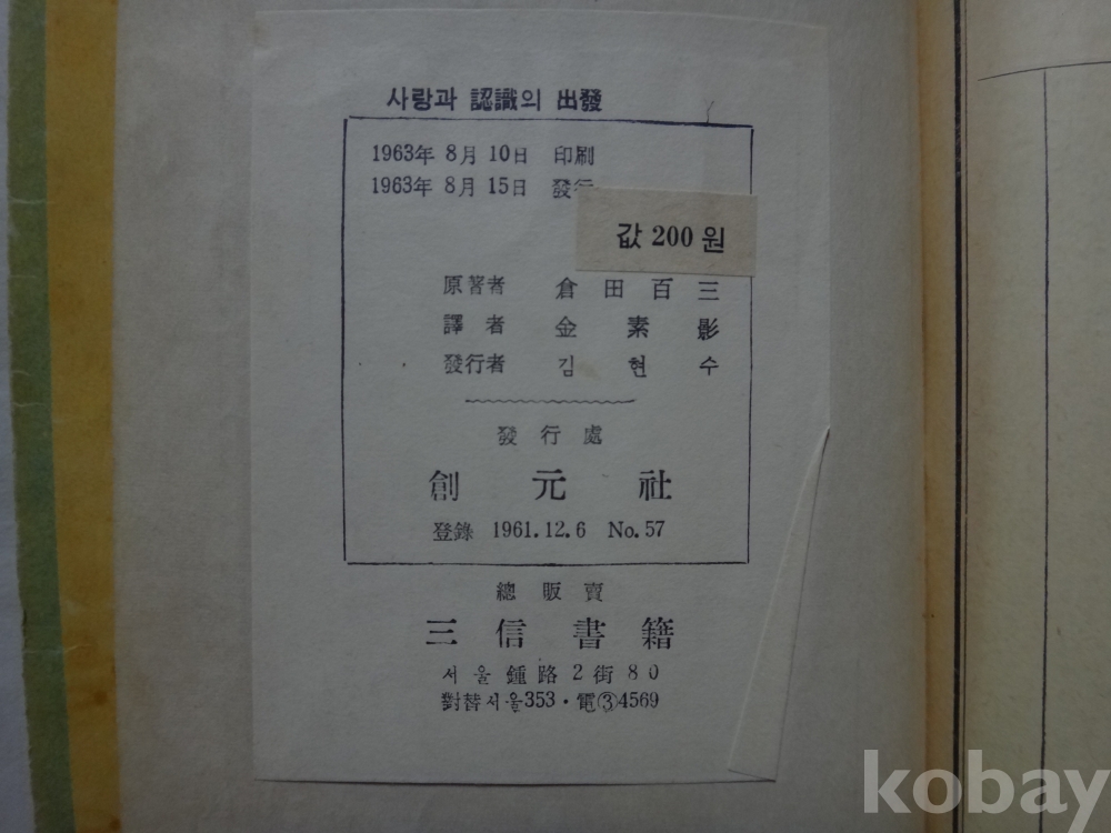 사랑과 인식의 출발 (1963년, 창전백삼 저, 김소영 역, 창원사)