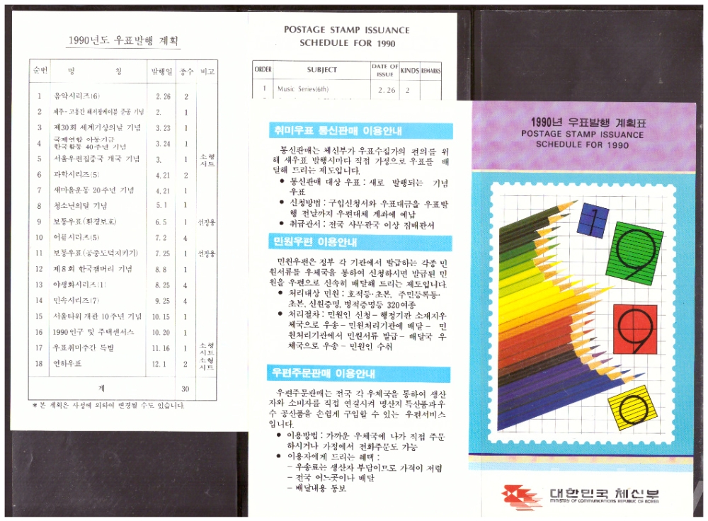 (안내카드) 1990 우표발행계획 (접지않음)