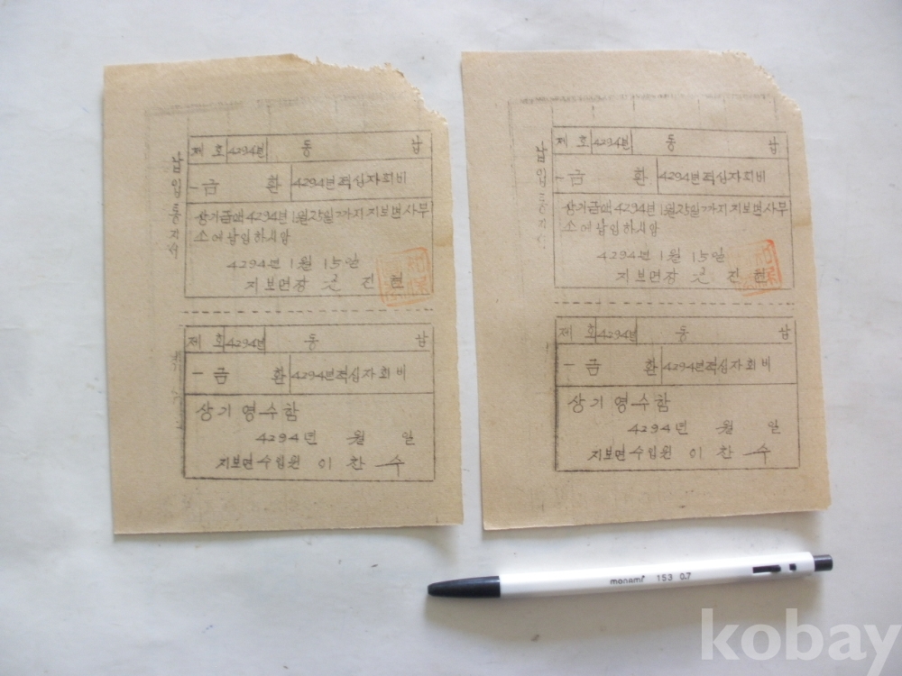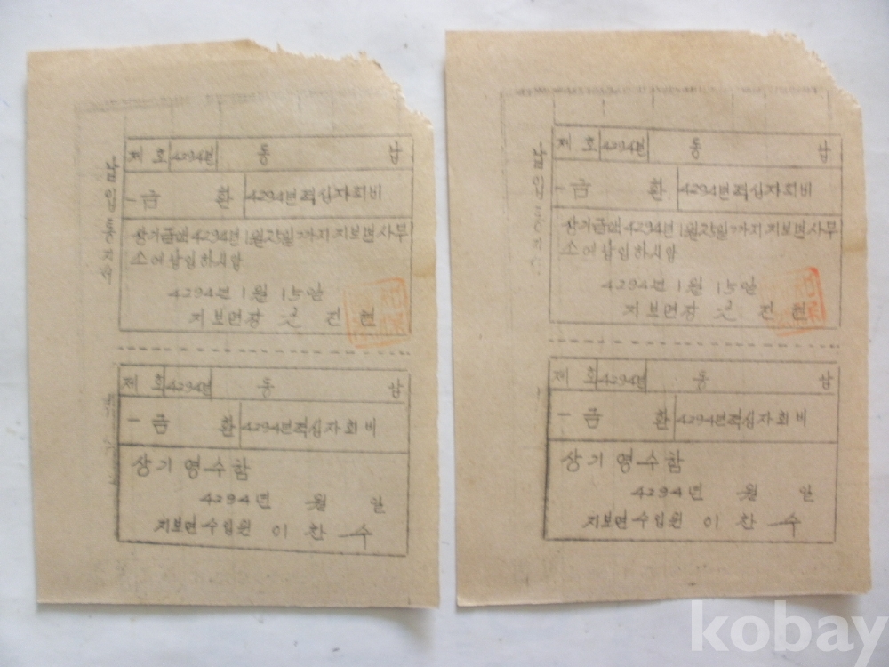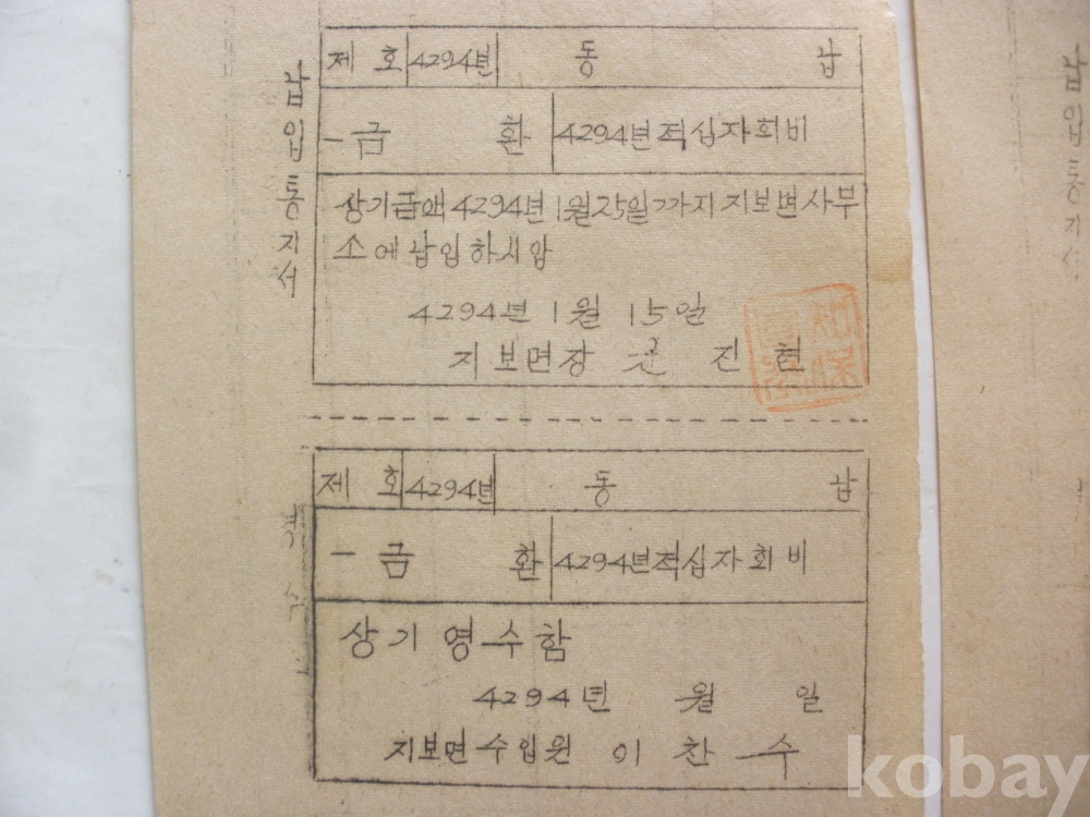 적십자회비 - 고지서 (2매일괄, 1961년, 지보면장)