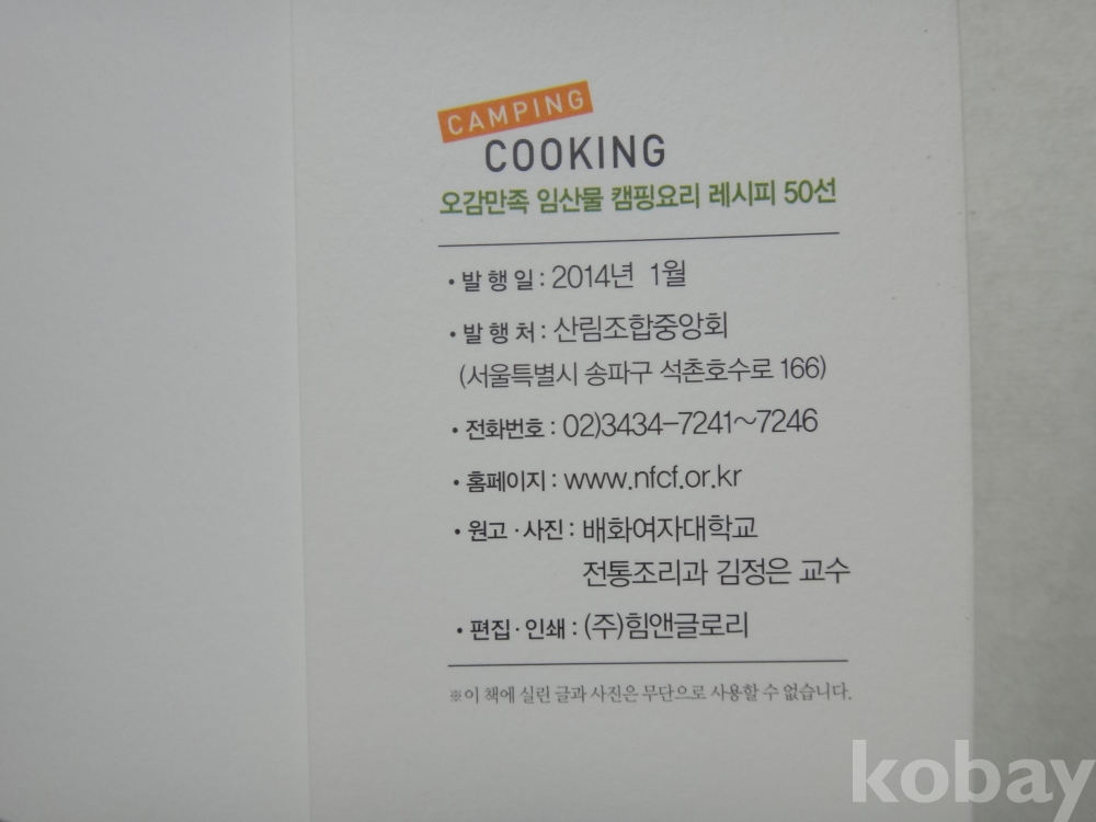 캠핑 쿠킹 - 오감만족 임산물 캠핑요리 레시피 50선 (2014년,산림조합중앙회)