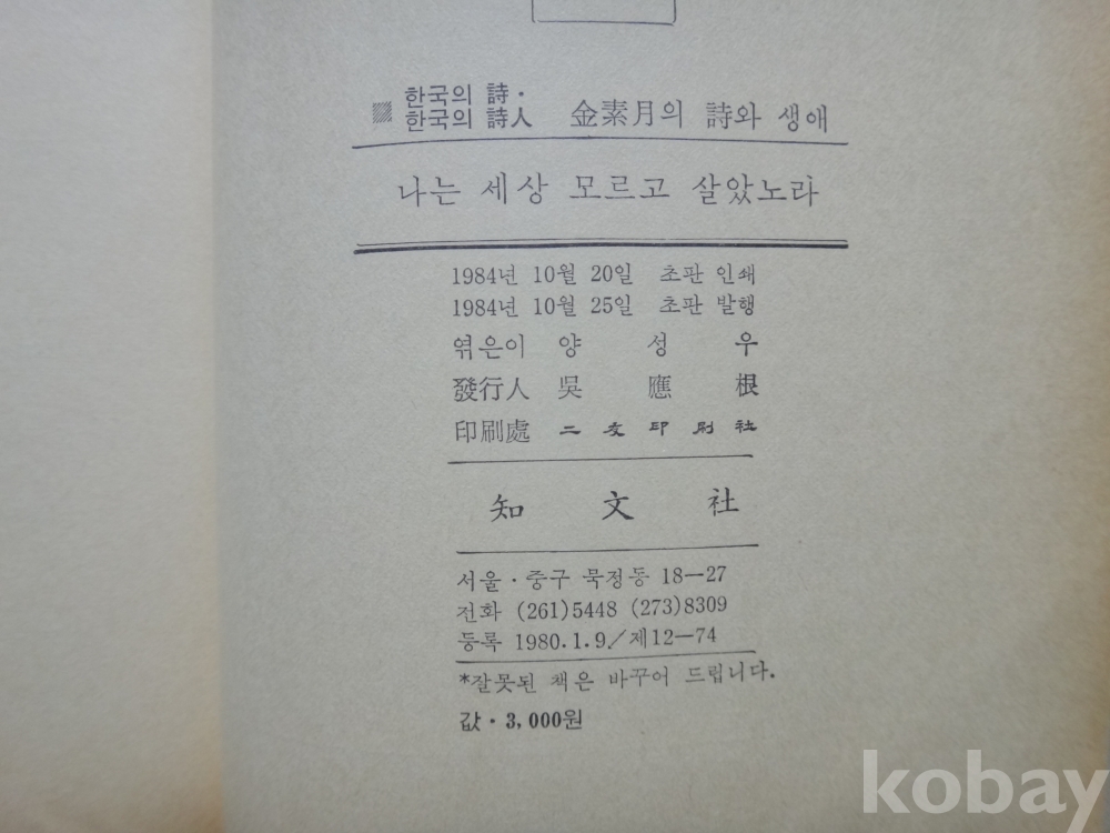 영원한 민족시인 "김소월" 짧은 생애과 시 - 나는 세상 모르고 살았노라 (1984년, 양성우 엮, 지문사)