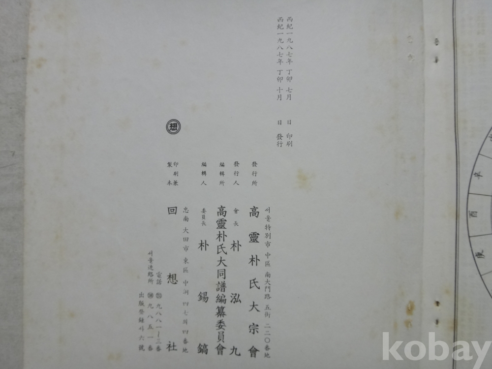 고령박씨 대종회 부록 - 족보, 한국성시일람, 본관일람표, 4례편람, 기타상식 등 (1987년)