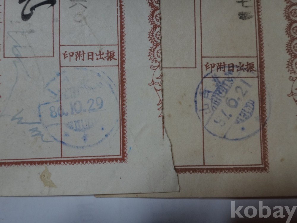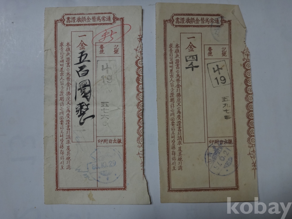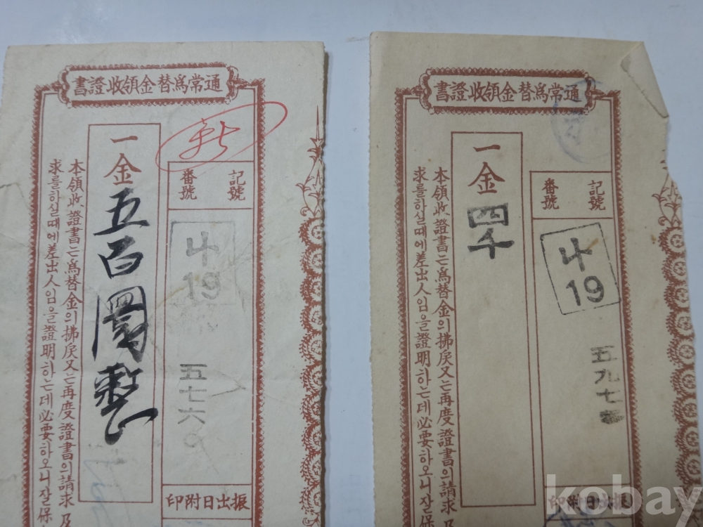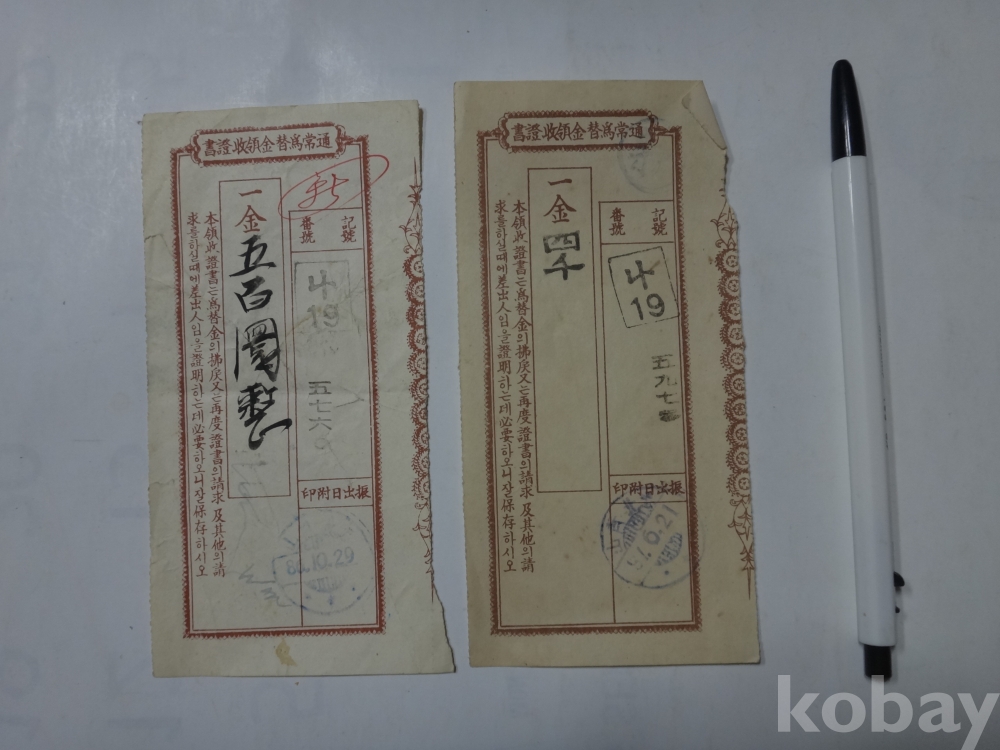 통상위채금 영수증서 - 2매일괄 (1953,1954년, 충북 청산)