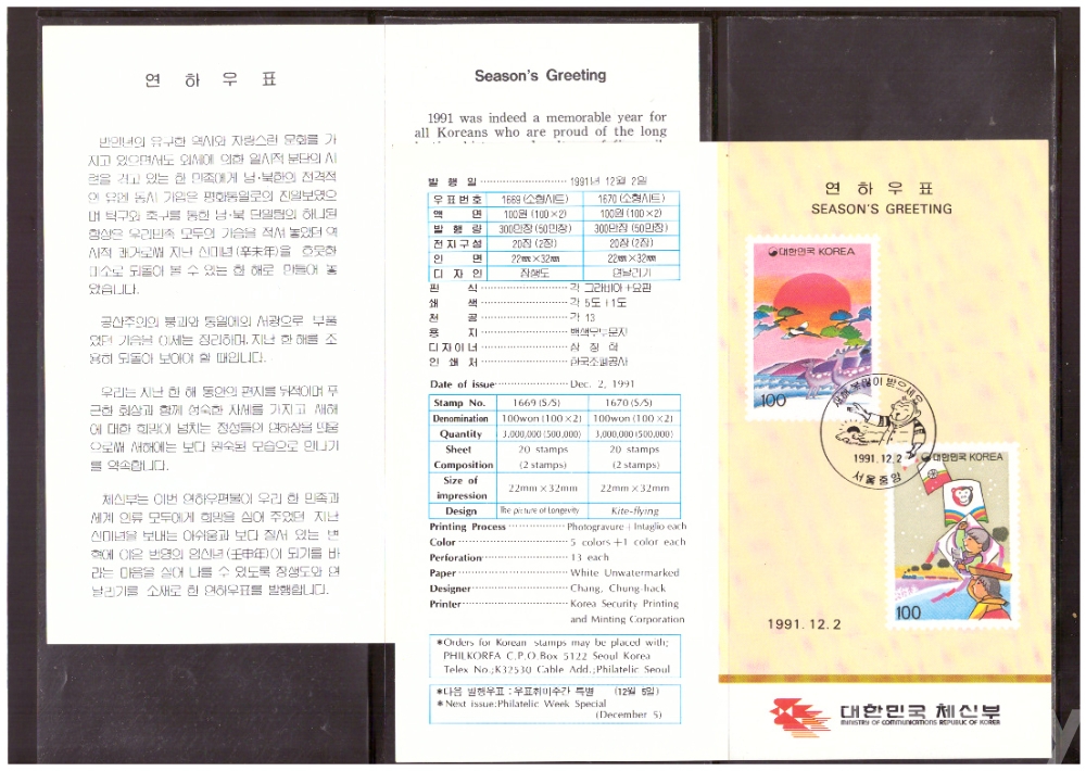 (안내카드) 1991.12.2 연하우표 (접지않음)