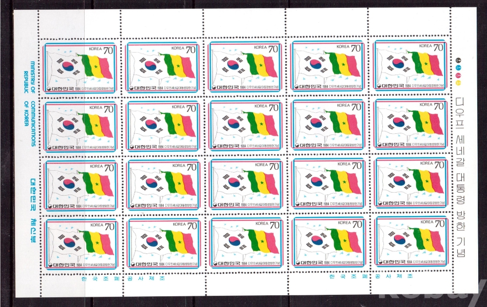 (한국전지) 1984.7.9 디우프 세네갈대통령 방한 sheet of 20 MNH