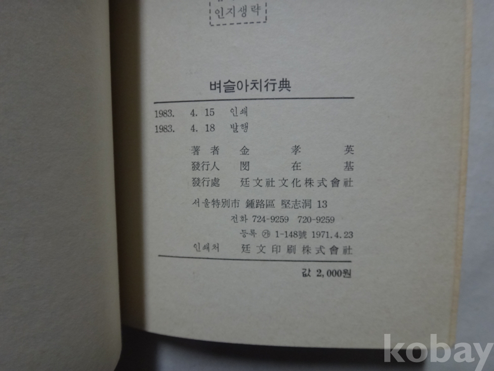 벼슬아치 행전 (1983년, 이효영 저, 연문사)