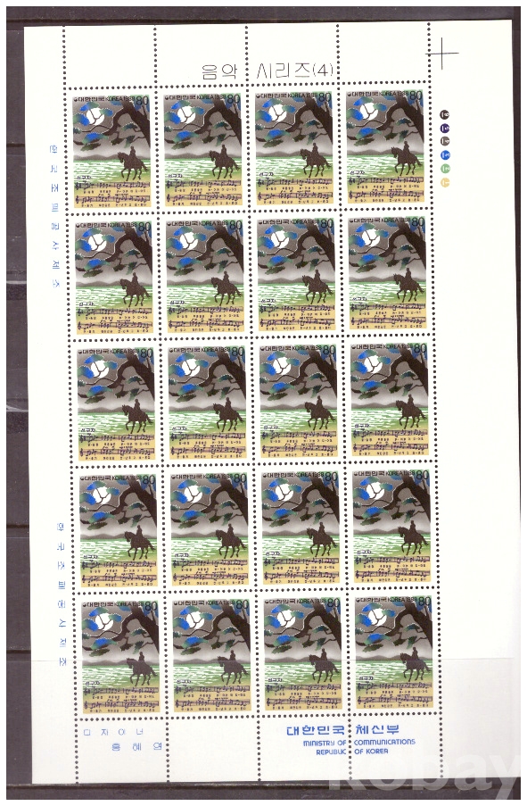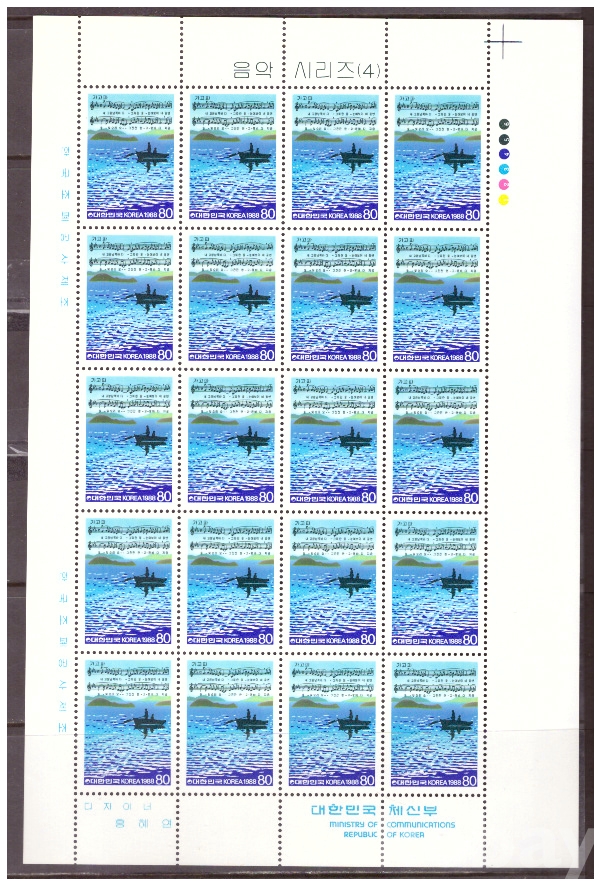 (한국전지) 1988.11.15 음악시리즈(네째묶음) 2완 sheet of 20 MNH