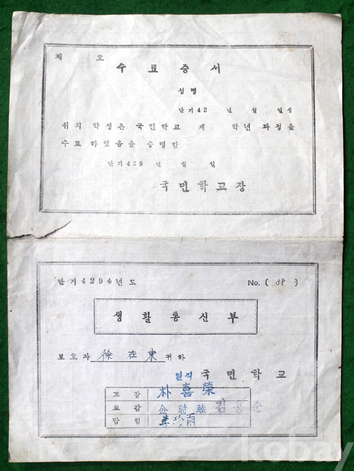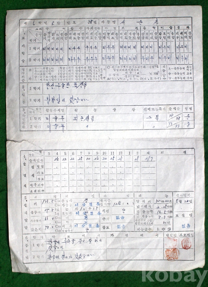 (상장 및 졸업장) 1961년 일직국민학교의 생활통지부 ...