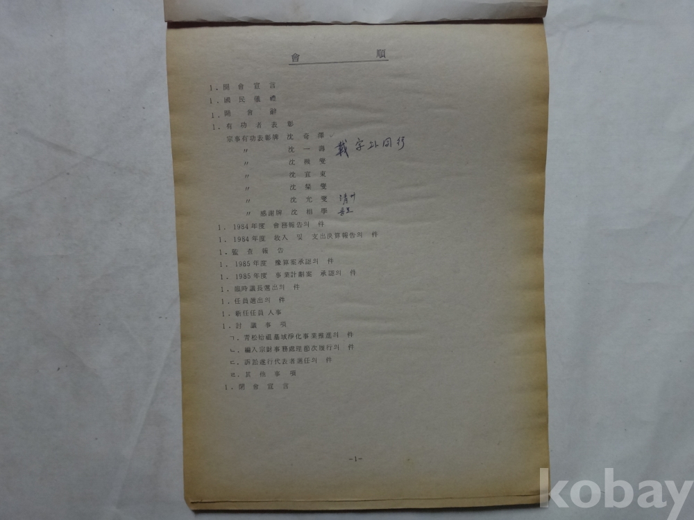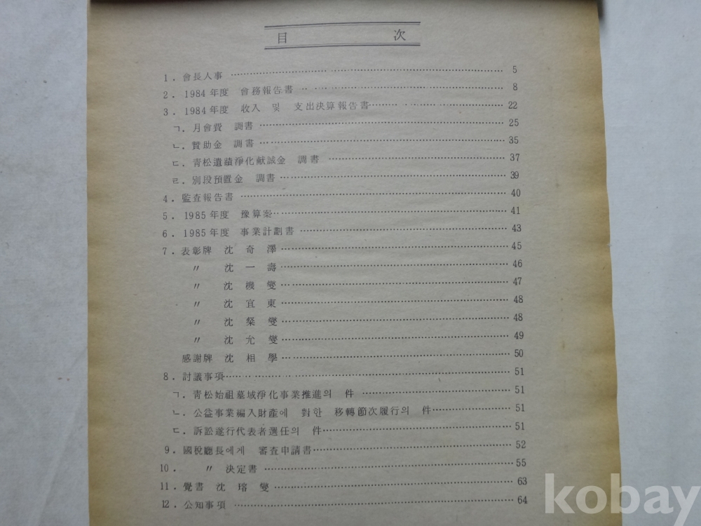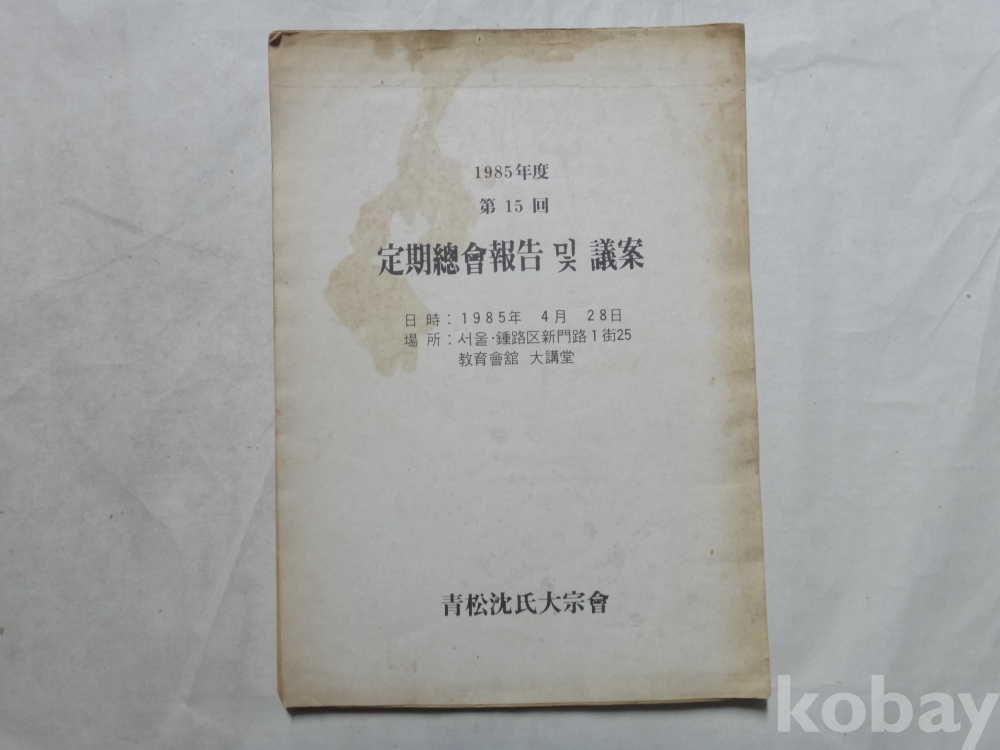 청송심씨 대종회 - 정기총회 보고 및 의안 (1985년)