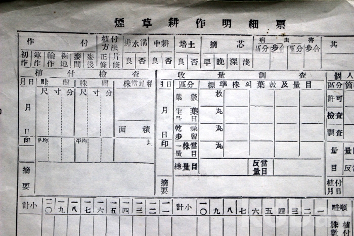6-70년대 대구지방전매청의 연초경작명세표 미사용 ...