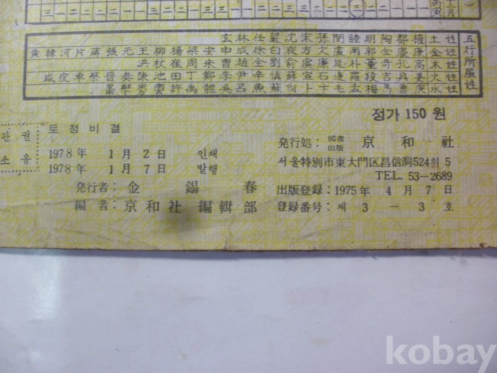 원본해설 - 토정비결 (1978년, 경화사)