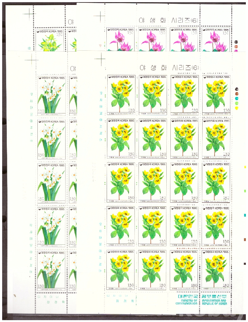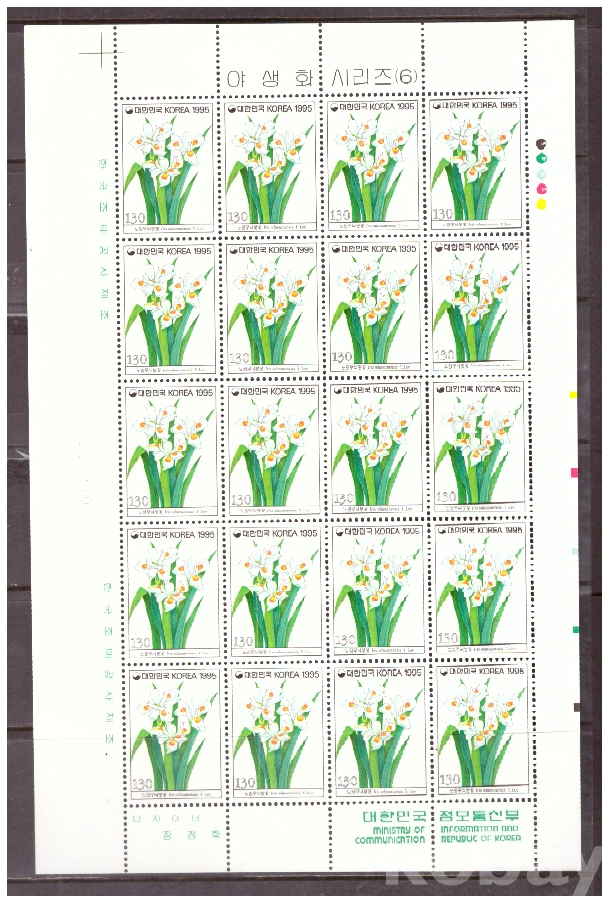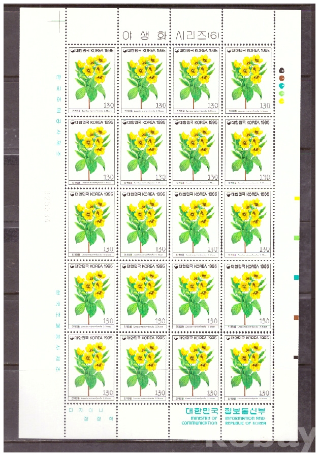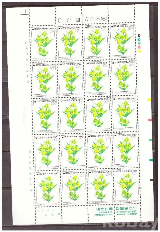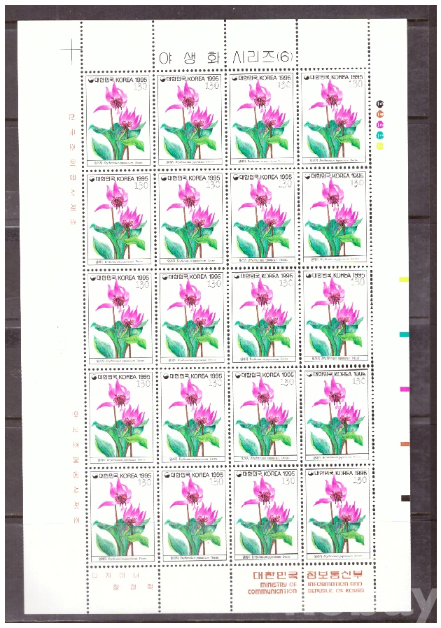 (한국전지) 1995.7.24 야생화시리즈(여섯번째묶음) 4완 sheet of 20 MNH