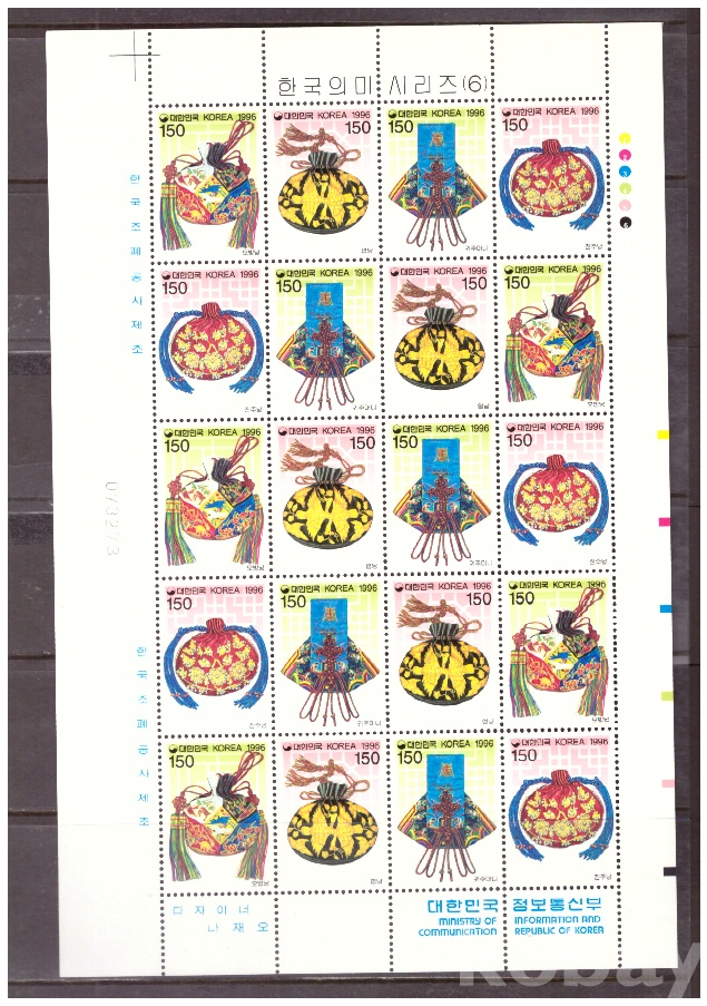 (한국전지) 1996.11.1 한국의 미시리즈(여섯번째묶음) sheet of 20 MNH